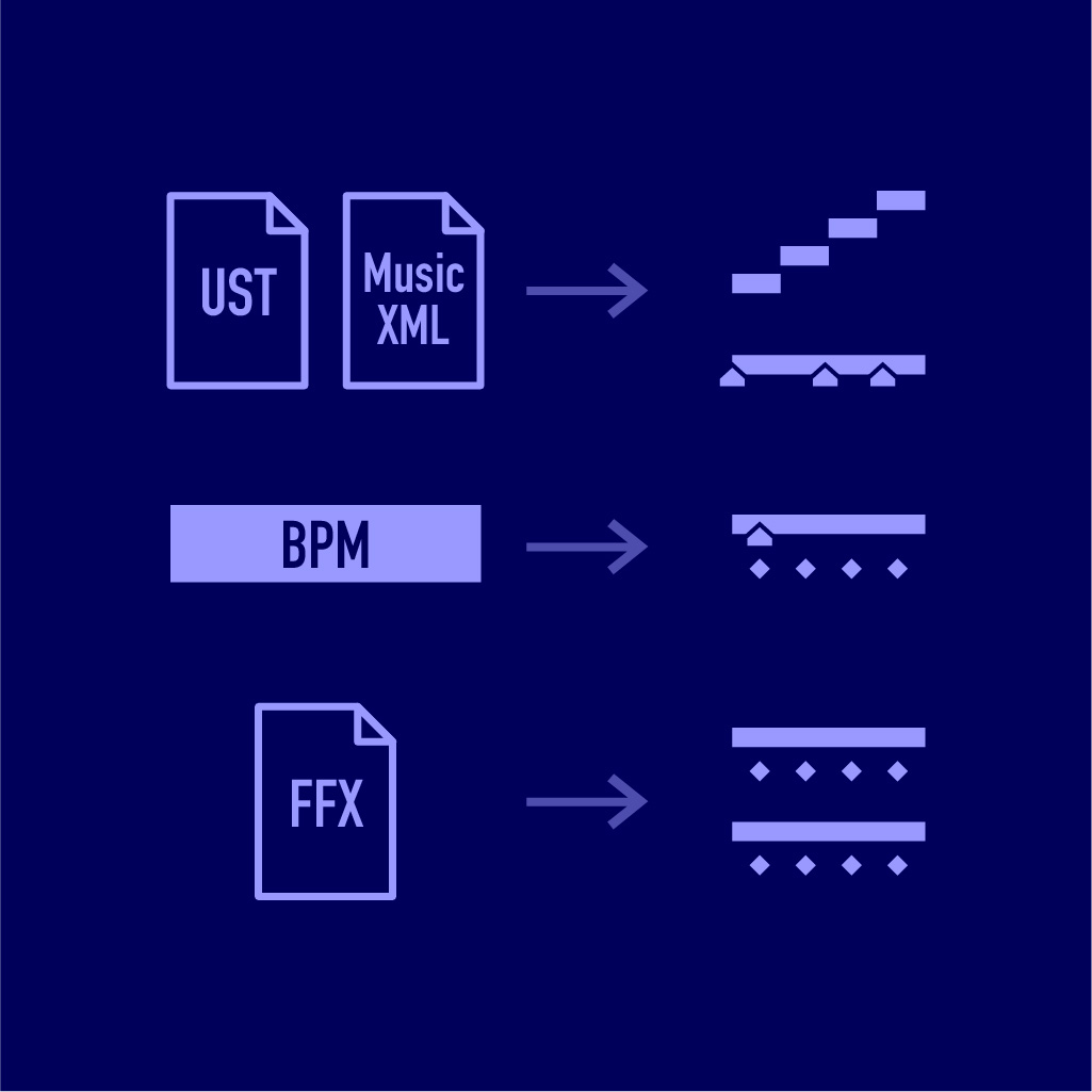 ボーカロイドや合成音声ソフトなどから書き出したMusicXMLまたはUSTファイルから、音楽に合わせた文字レイヤーを生成 BPM情報をキーフレームで出力 アニメーションプリセットを複数同時に反映 配布先 booth